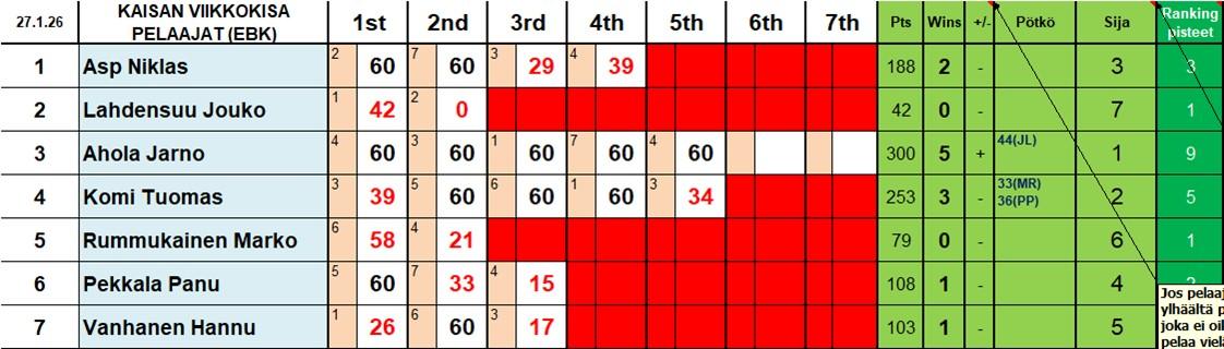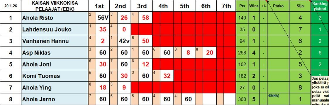 22.1. - 31.3. Snooker talvisarja on klubilaisille tarkoitettu oma tasoitussarja joka alkaa tammikuun lopulla. Ilmoittautumiset ke.21.1. klo 18:00 mennessä:…