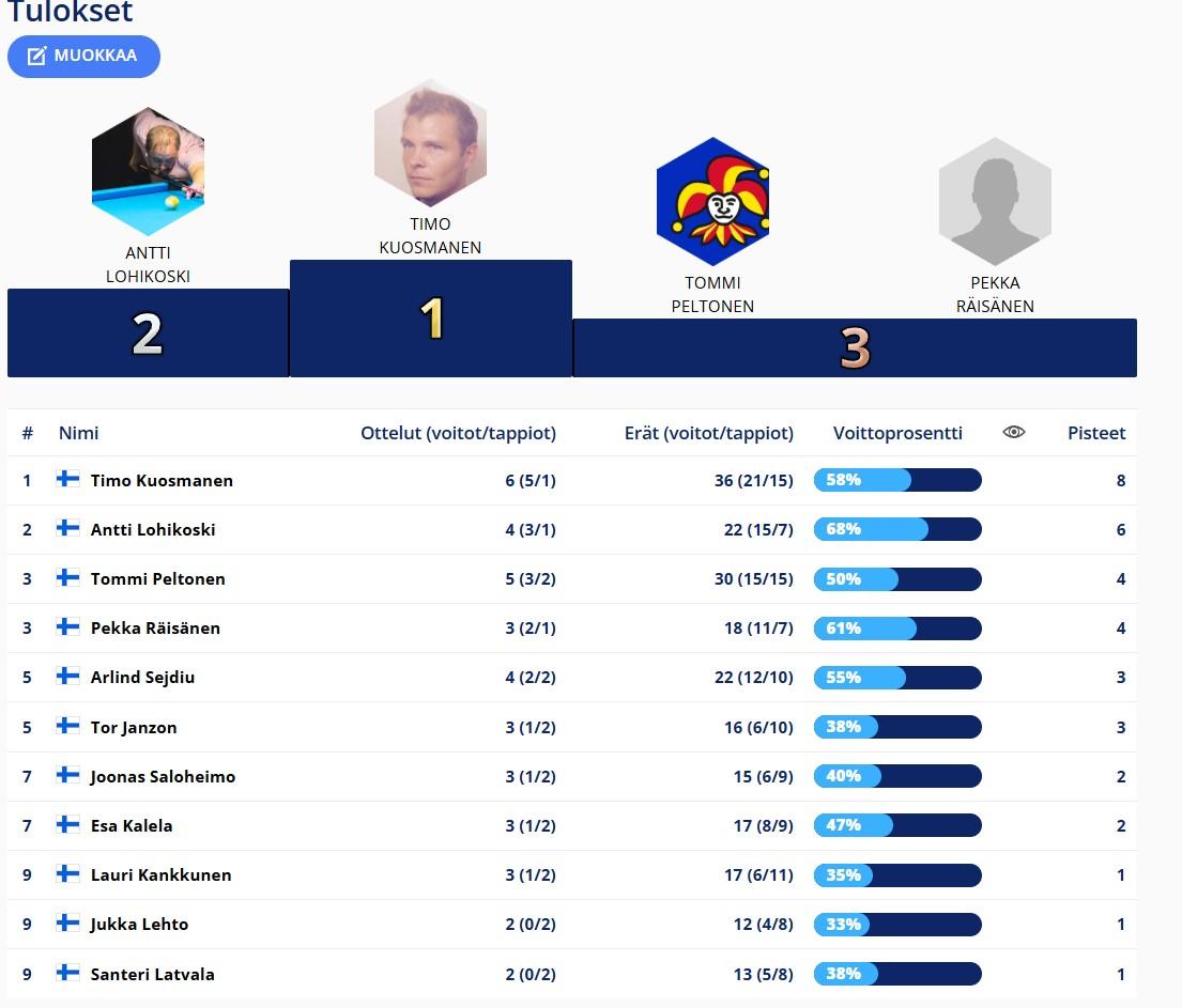 Laji: Kaisa Pelipaikka: Espoon Biljardikerhon klubi Pvm: lauantaina 13.6.2026 Alkamisaika: klo. 10:00 Osallistumismaksu: 30€ Osallistumisoikeus: kaikilla, 30 nopeinta pääsee mukaan Palkinnot: 100%…