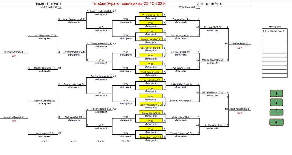Torstain haastajaisiin ysipalloilemaan saatiin tällä kertaa mukavasti kahdeksan pelaajaa, joten alkukierroksilla ei kukaan joutunut volkkarin takia odottelemaan peliään. Varsin vakioporukalla mentiin…