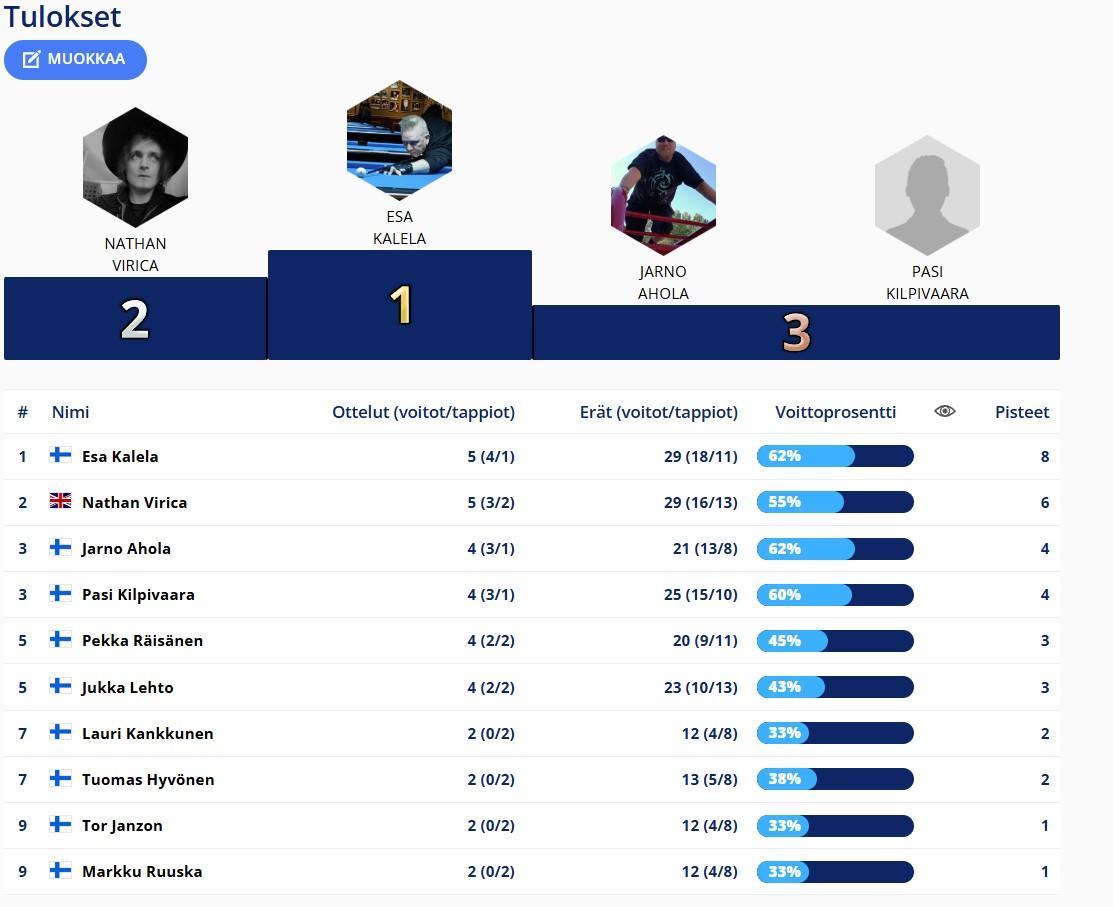 Seitsemän peluria tänään ysipalloilemassa. EBK:n omien vakiokävijöiden lisäksi vieraspelaajina Tuomas Elo ja Ari Ylhäinen, joista Tuomas eteni kahdella voitolla suoraan cup-vaiheeseen. Toisena…
