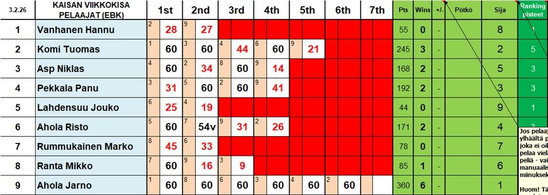 Tällä viikolla saatiin 9 pelaajaa mikä on max määrä että CUP vaihe ei ole käytössä. Rummukaisen Marko saapui jälleen vieraana haastamaan Espoolaisia. Vaikka tällä kertaa ei vielä voittoja herunut,…