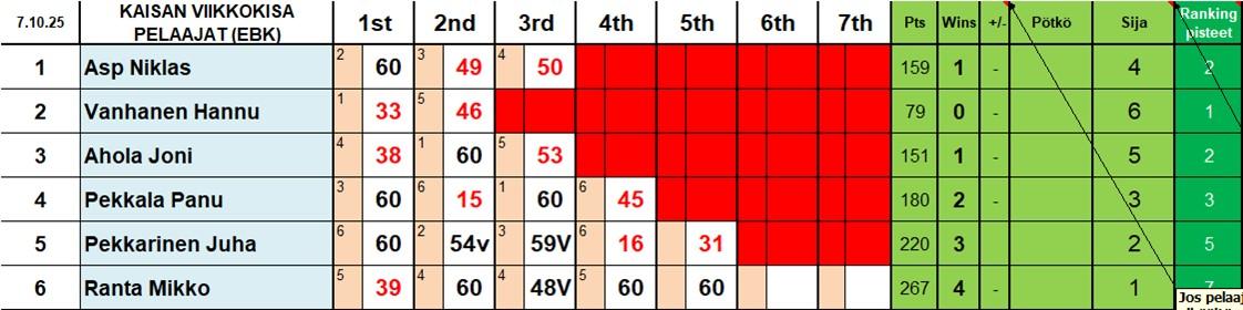 Tänään kaisan viikkokisoisssa 6-pelaajaa. Mukana myös pooli Pekkis. Pekkis ainoa puhtailla toisen kieroksen jälkeen aina finaaliin asti. Finaalissa Pekkistä vastaan Mikko. Mikko voitti ensimmäisen…