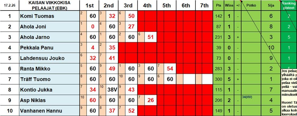 Kahdentoista pelurin voimin päästiin tänään kisailemaan. Mukana kaksi vierasta - Arlind Sejdiu ja Jaakko Vähäsarja. Vieraista Jaakko eteni välieriin yhdellä tappiolla ja kolmella voitolla, joista…