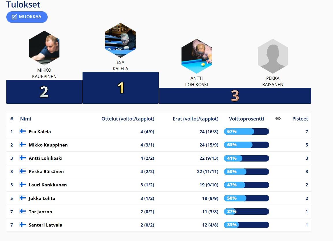 Yhdeksän voimin viikkokisat tällä kertaa. Semeihin tänään Skobe/Esa ja Pekka/Santeri Joista finaaliin Esa ja Pekka. Finaalin alussa Esa meni 2-0 johtoon jonka jälkeen Pekka alkoi kiriä mutta matka…