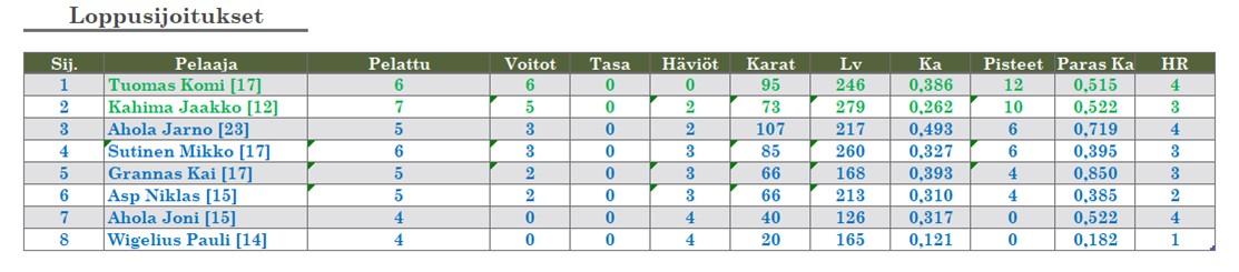 Ottelut pelataan max. 50lv rajoituksella + tasoittava lyöntivuoro (aloitustilanteesta).