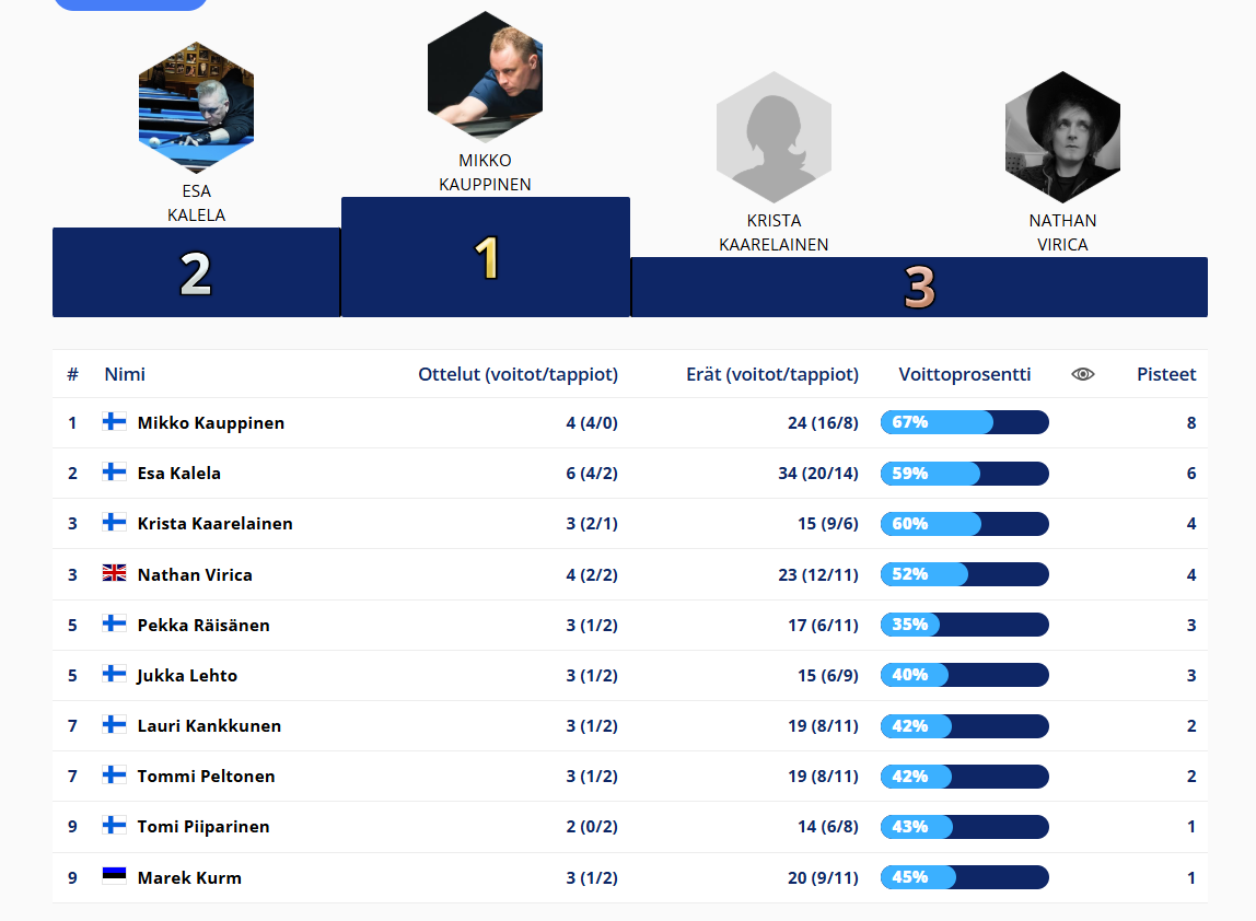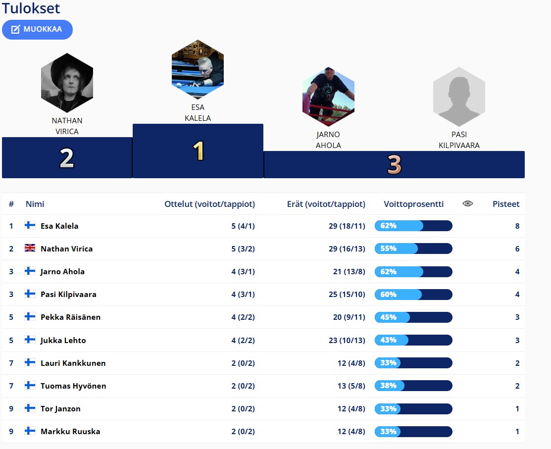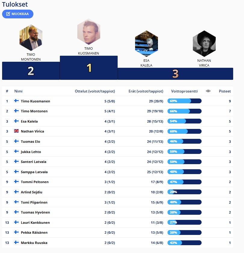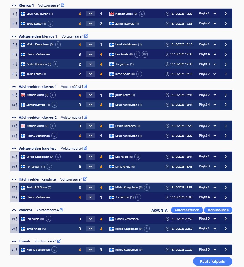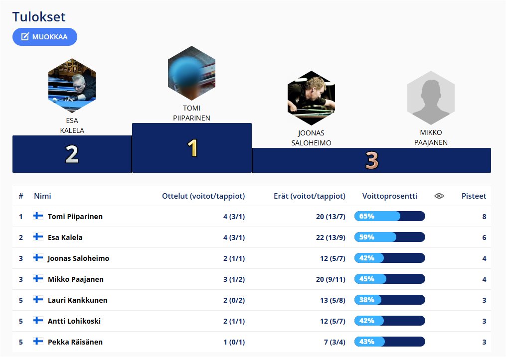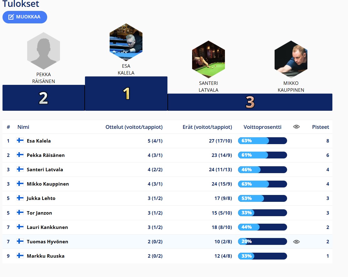 Tulokset kerätään tähän kauden osalta. Uutisissa tarkemmat raportit ja uusimmat tulokset.