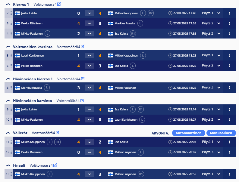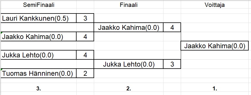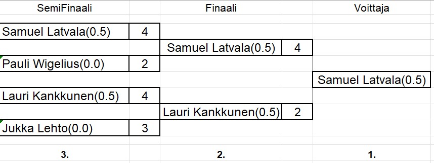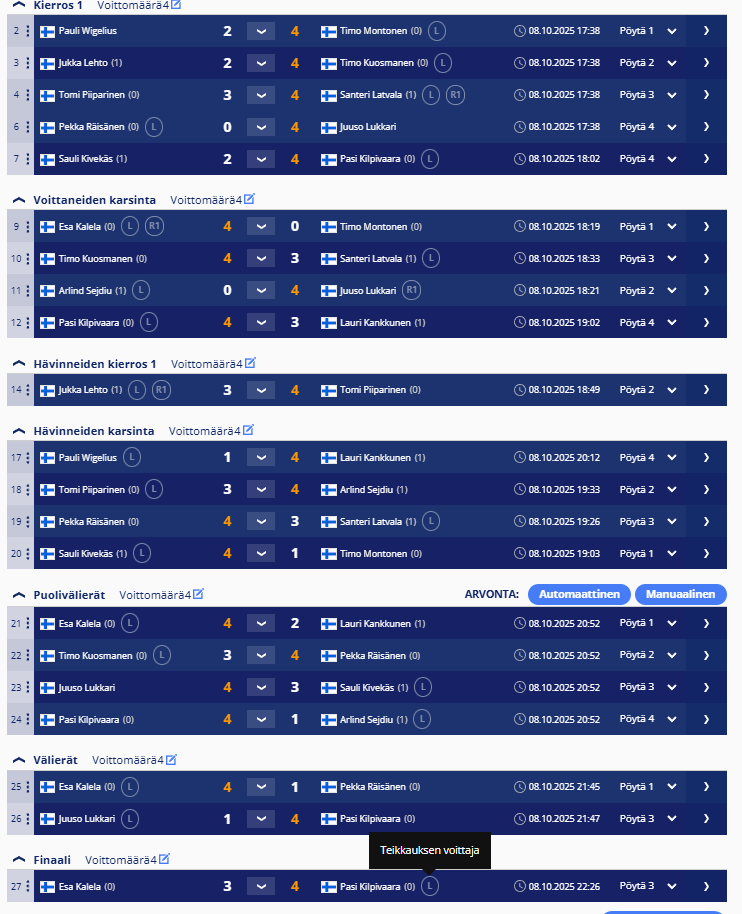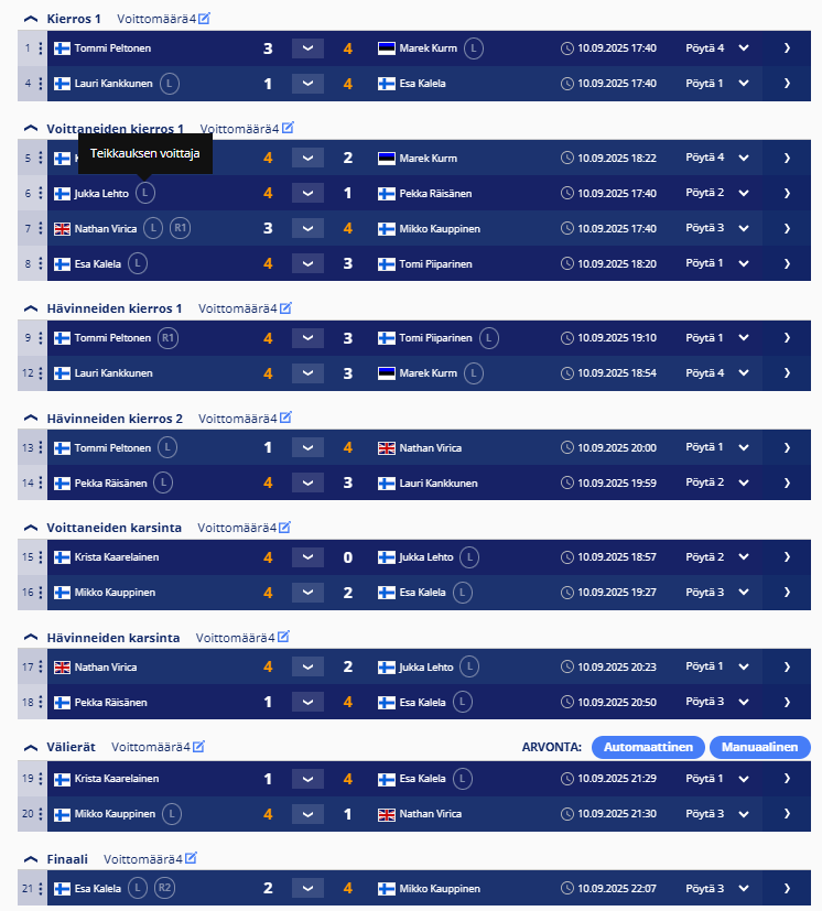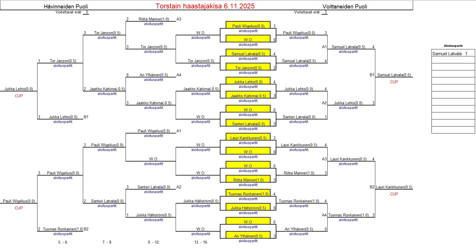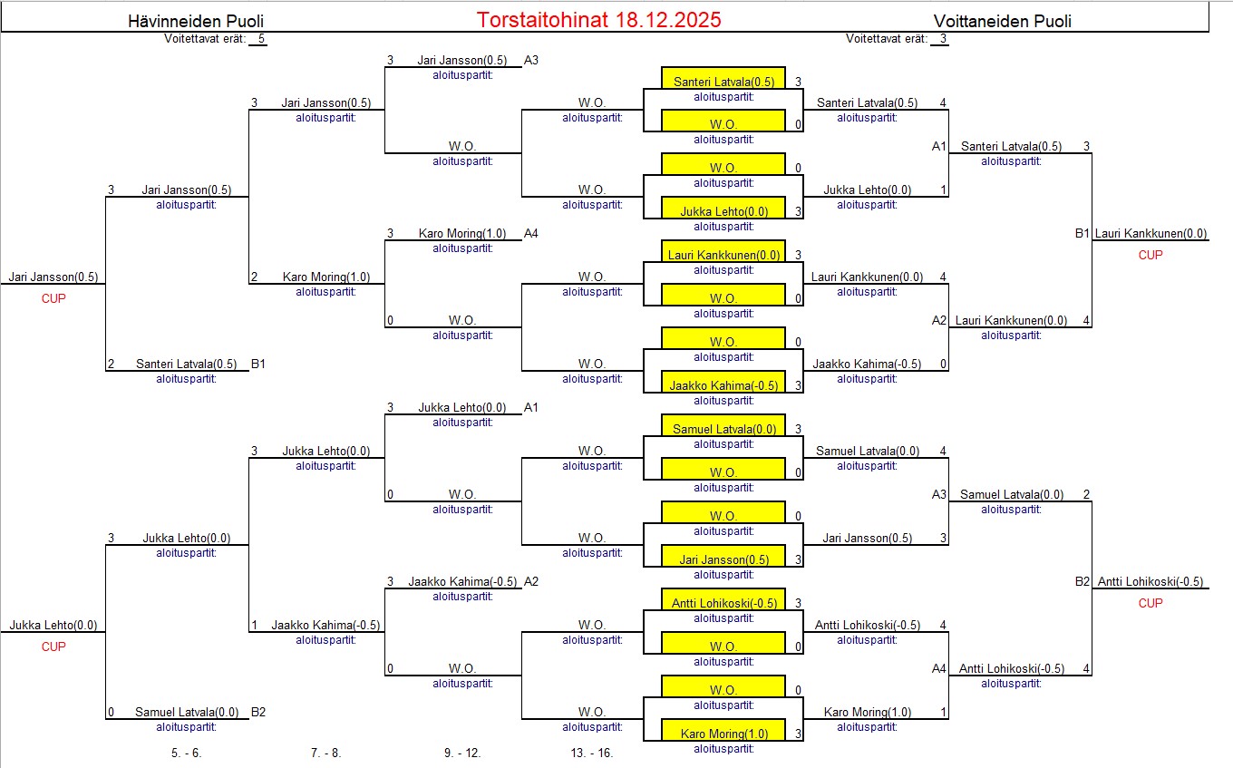 sisältää keskiviikkokisojen tulokset ja myös torstai haastiskisojen tuloksia. Tiedostojärjestyksessä, ei päivämääräjärjestyksessä.