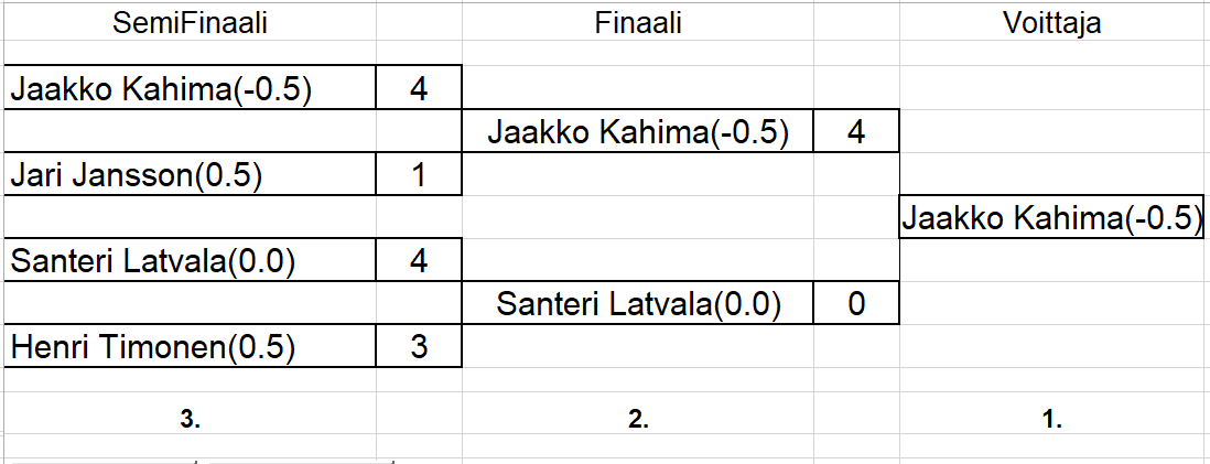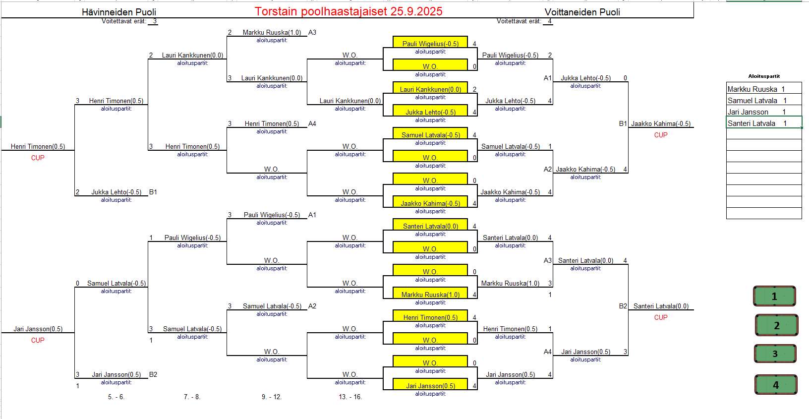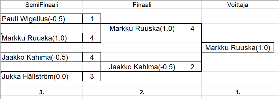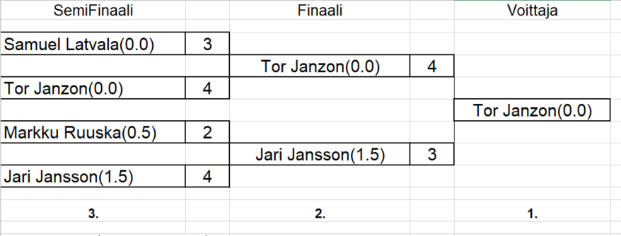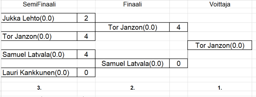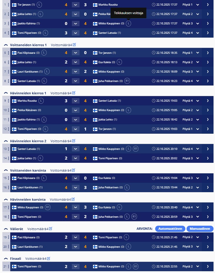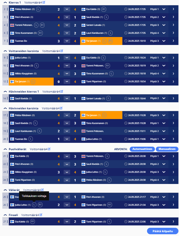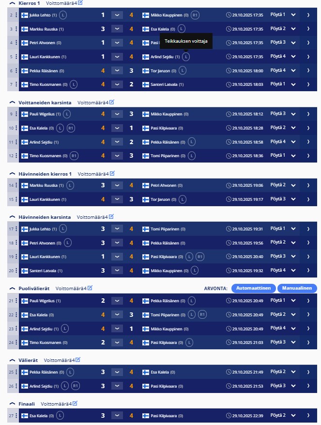 sisältää keskiviikkokisojen tulokset ja myös torstai haastiskisojen tuloksia. Tiedostojärjestyksessä, ei päivämääräjärjestyksessä.