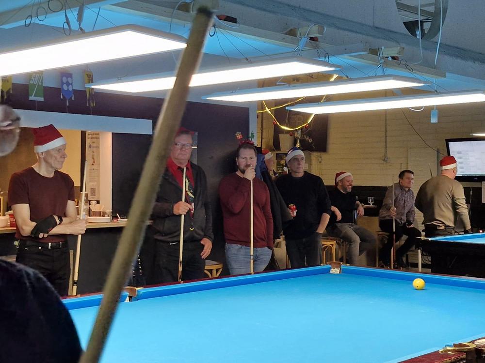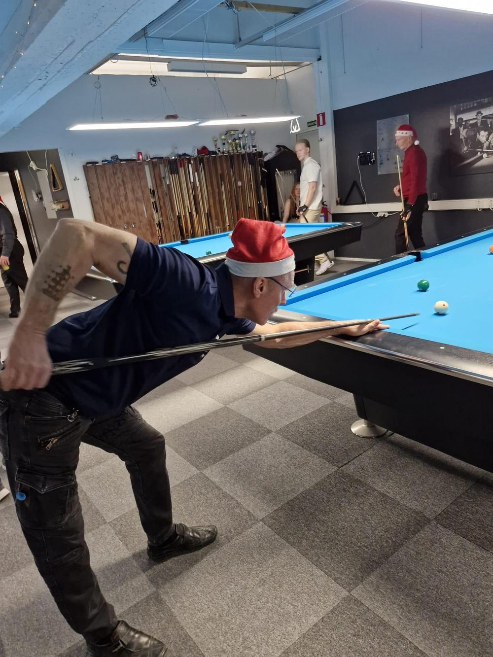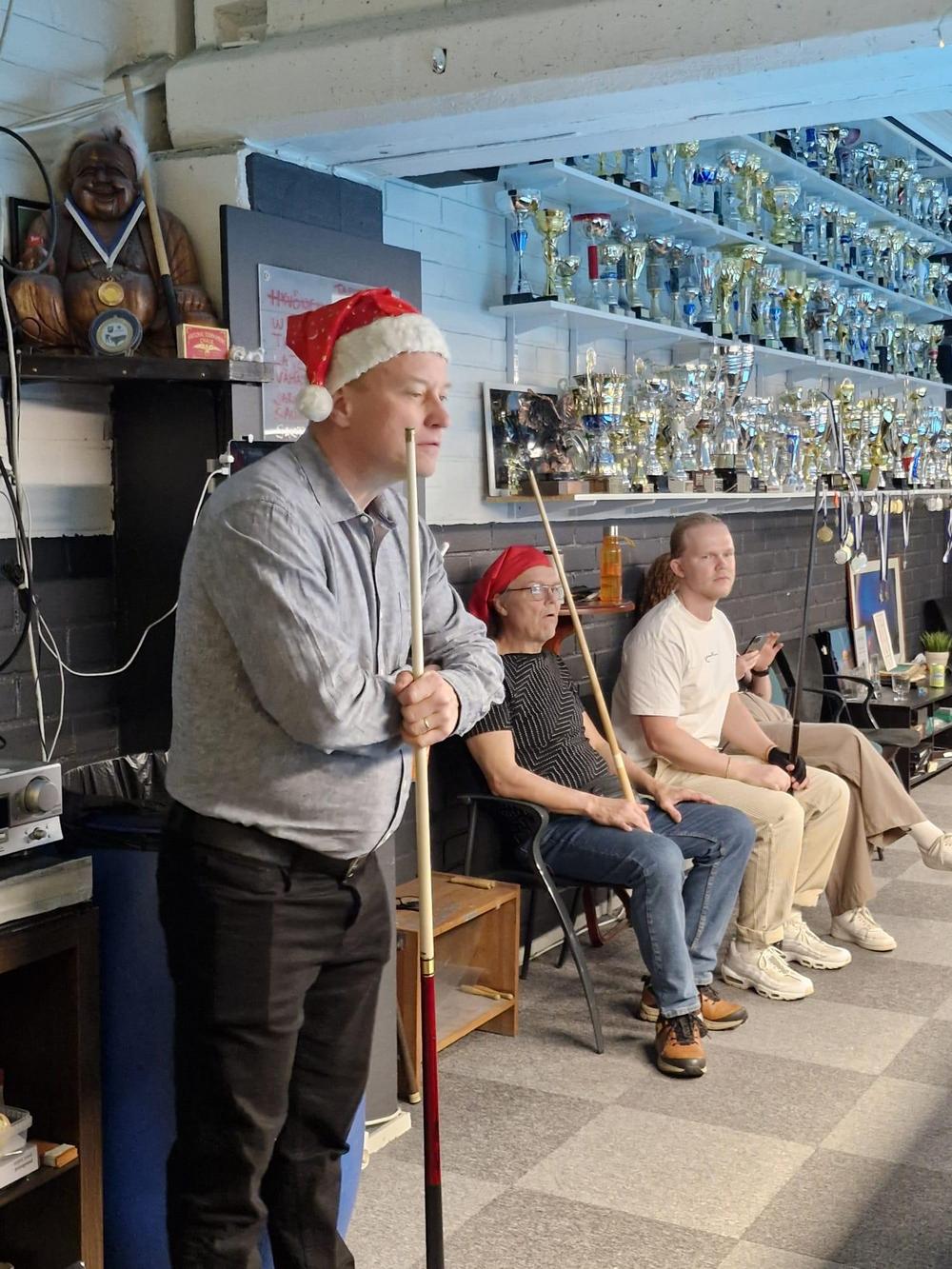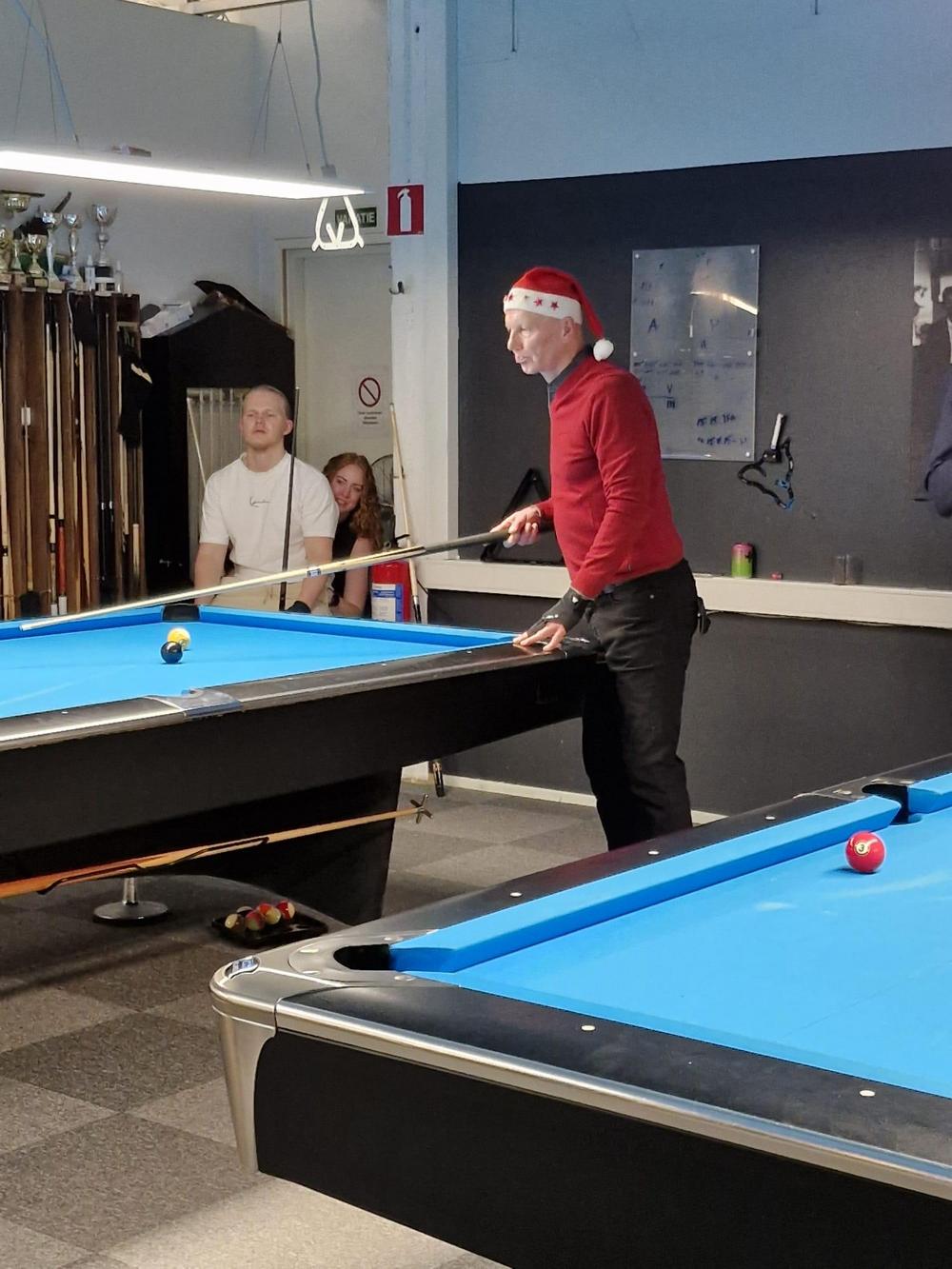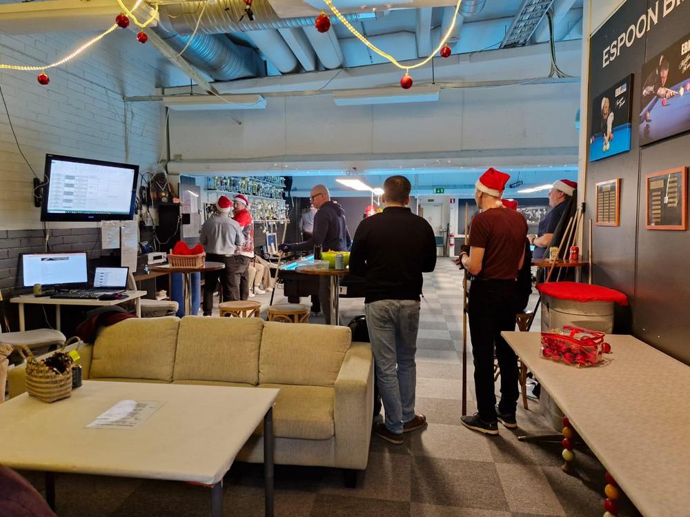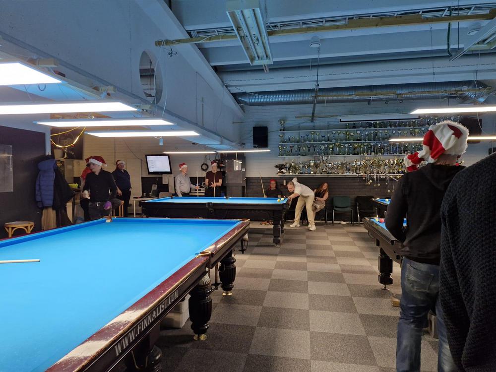 Pikkujoulut alkoi tuttuun tapaan kinkkukilpailuilla jossa pelattiin taas totutusti sekä 8-palloa (9-pakalla) kaisapöydällä että kärriä pyramidi- & kaisapöydillä yhtenä kilpailuna. Kinkkuja oli jaossa 3 kpl, 8-pallokilpailun voittajalle, kärrikilpailun voittajalle ja kärrikilpailun parhaalle tappajalle. 35 pelaajan ollessa mukana tempo oli nopea ja mestareita jouduttiin selvittämään vielä ruokailun jälkeenkin.