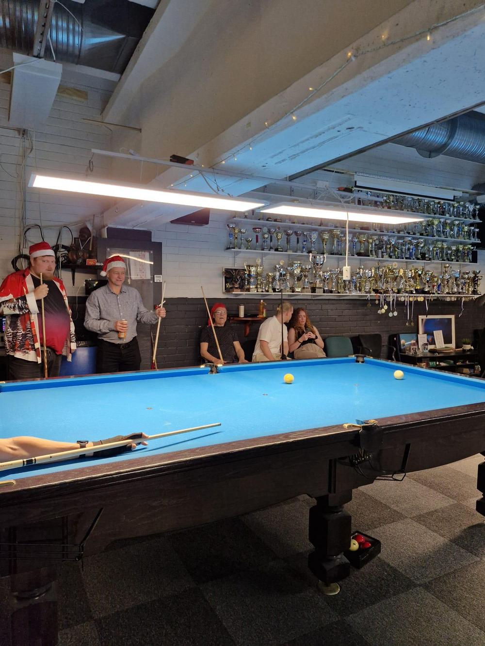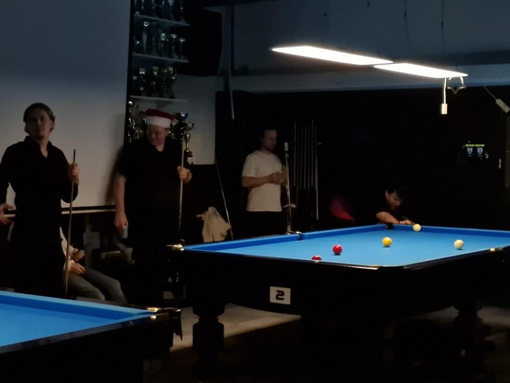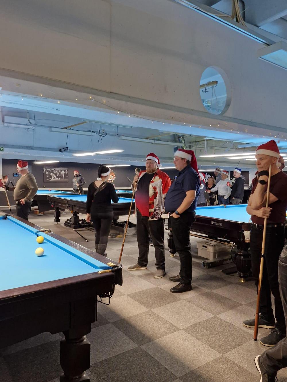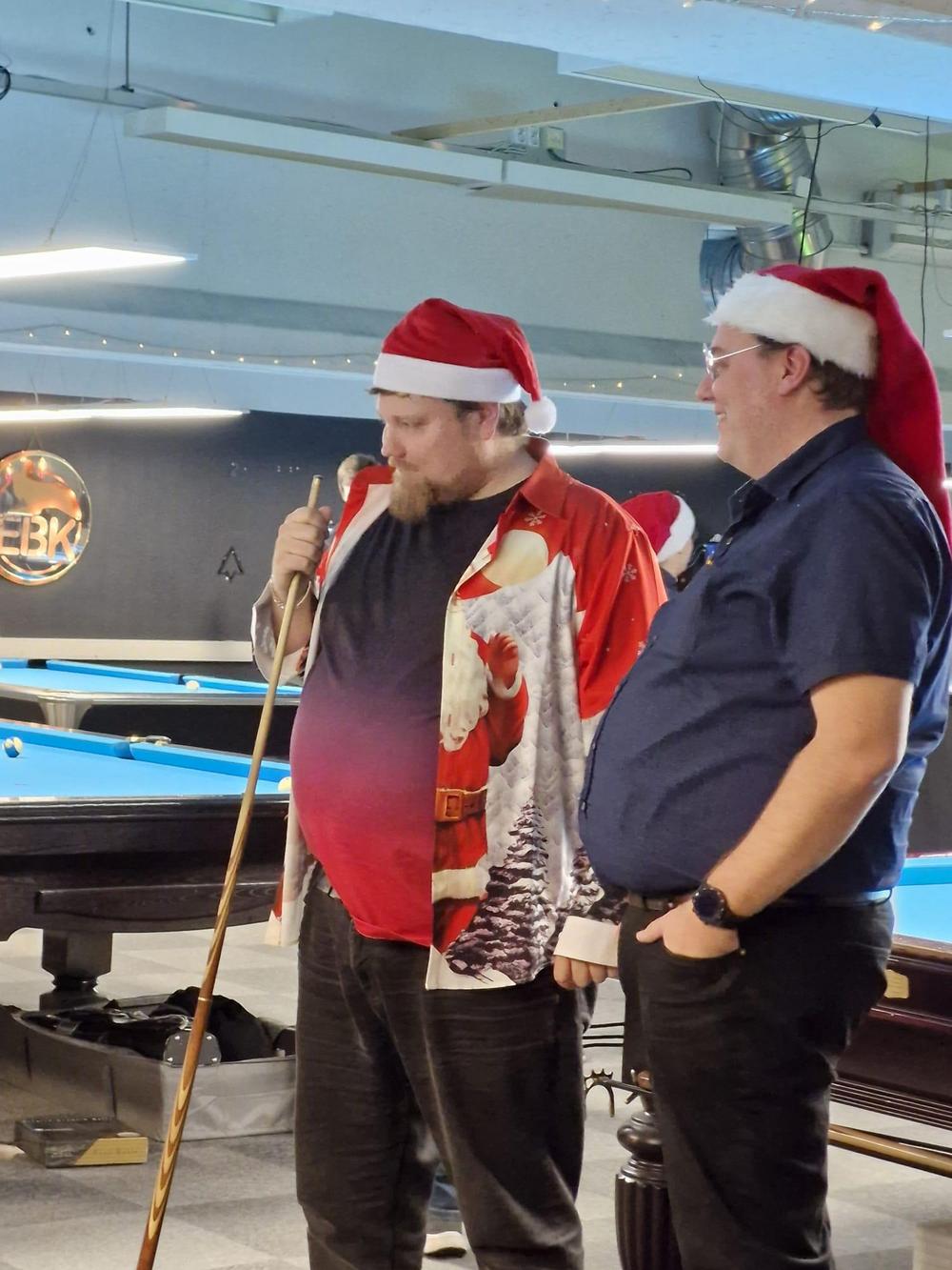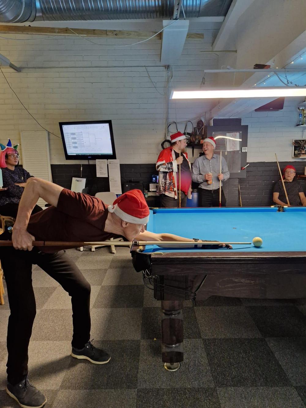 Pikkujoulut alkoi tuttuun tapaan kinkkukilpailuilla jossa pelattiin taas totutusti sekä 8-palloa (9-pakalla) kaisapöydällä että kärriä pyramidi- & kaisapöydillä yhtenä kilpailuna. Kinkkuja oli jaossa 3 kpl, 8-pallokilpailun voittajalle, kärrikilpailun voittajalle ja kärrikilpailun parhaalle tappajalle. 35 pelaajan ollessa mukana tempo oli nopea ja mestareita jouduttiin selvittämään vielä ruokailun jälkeenkin.