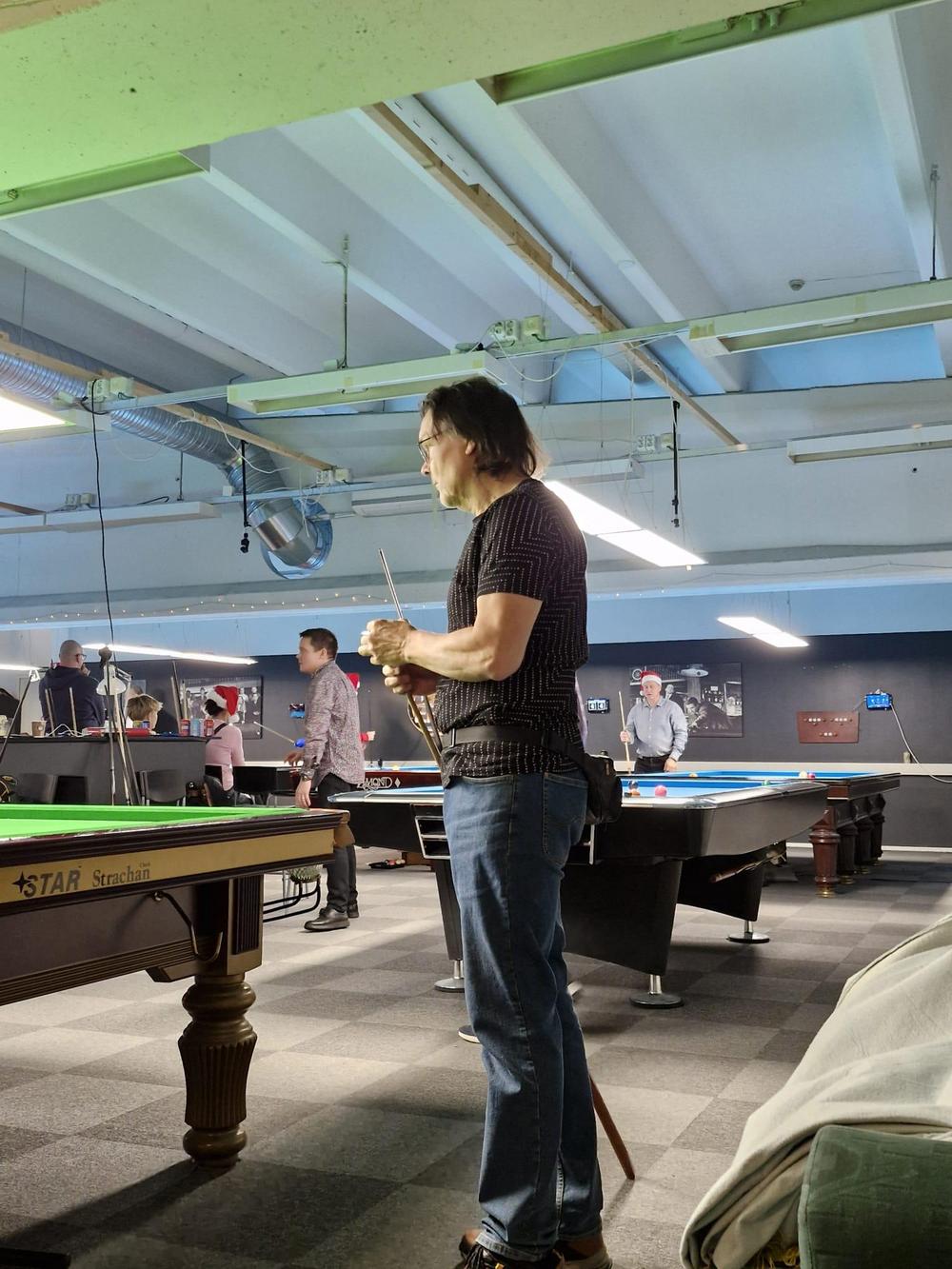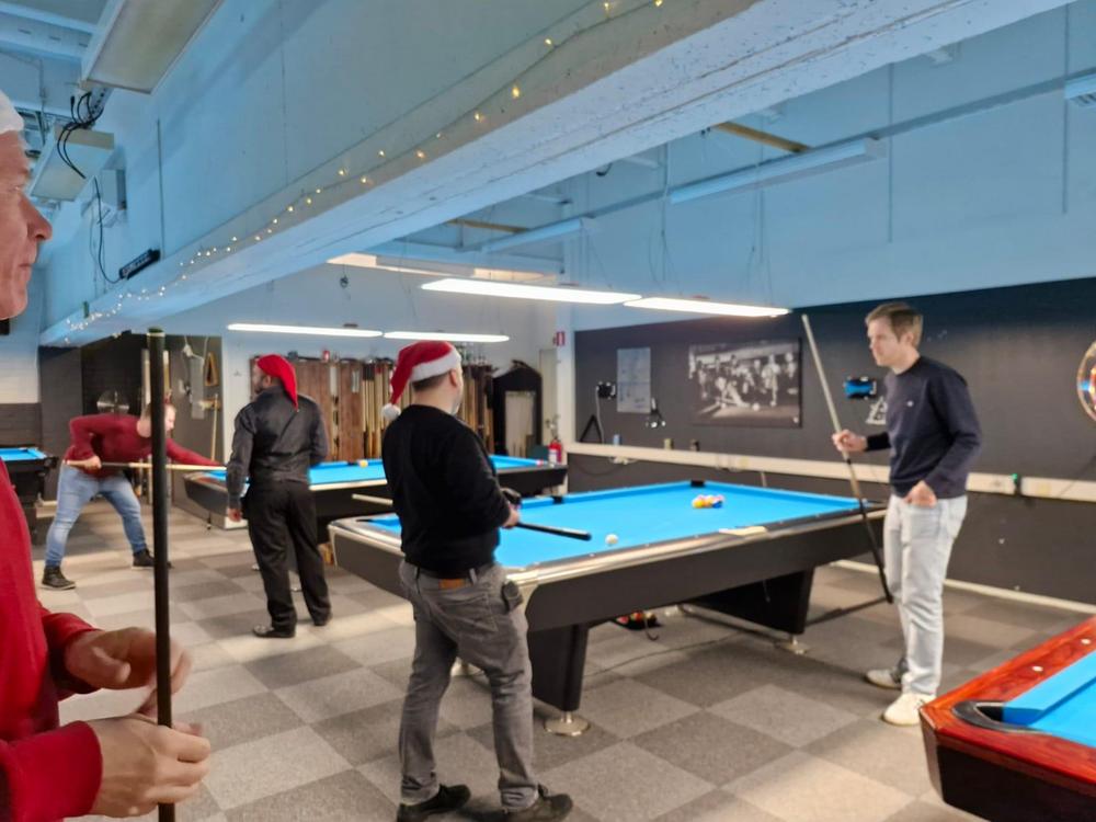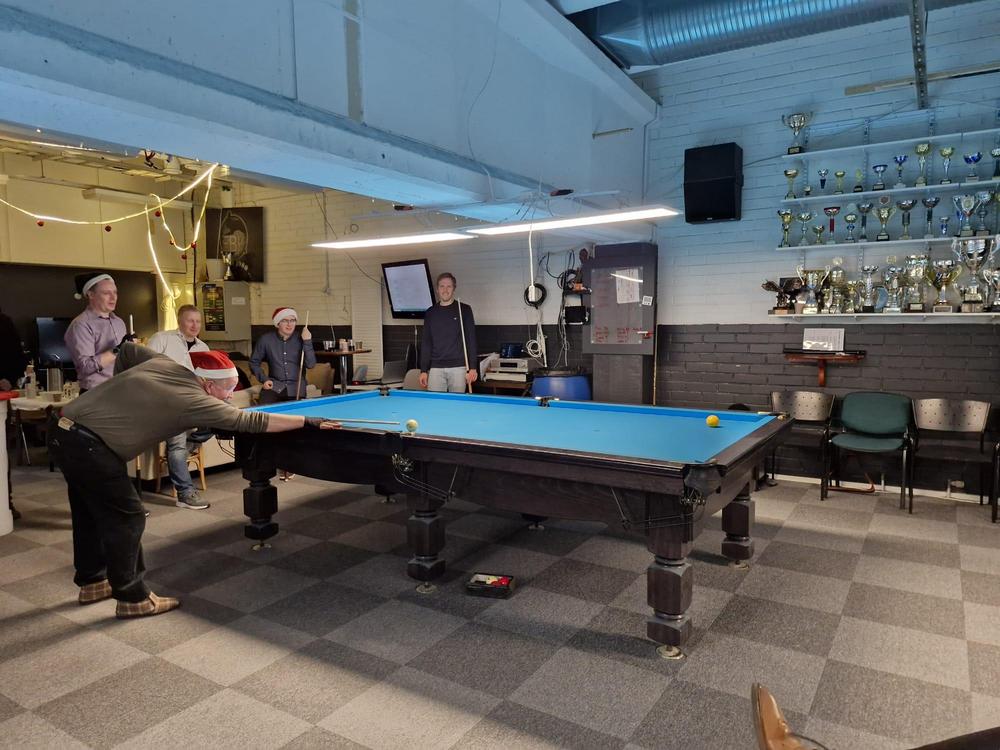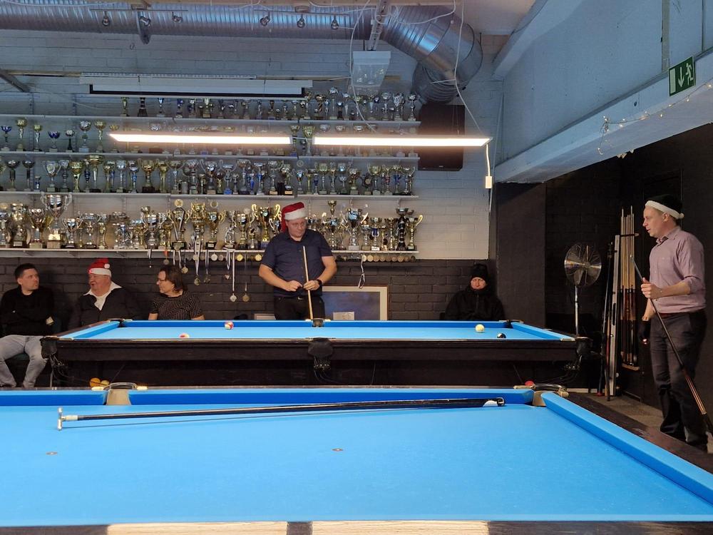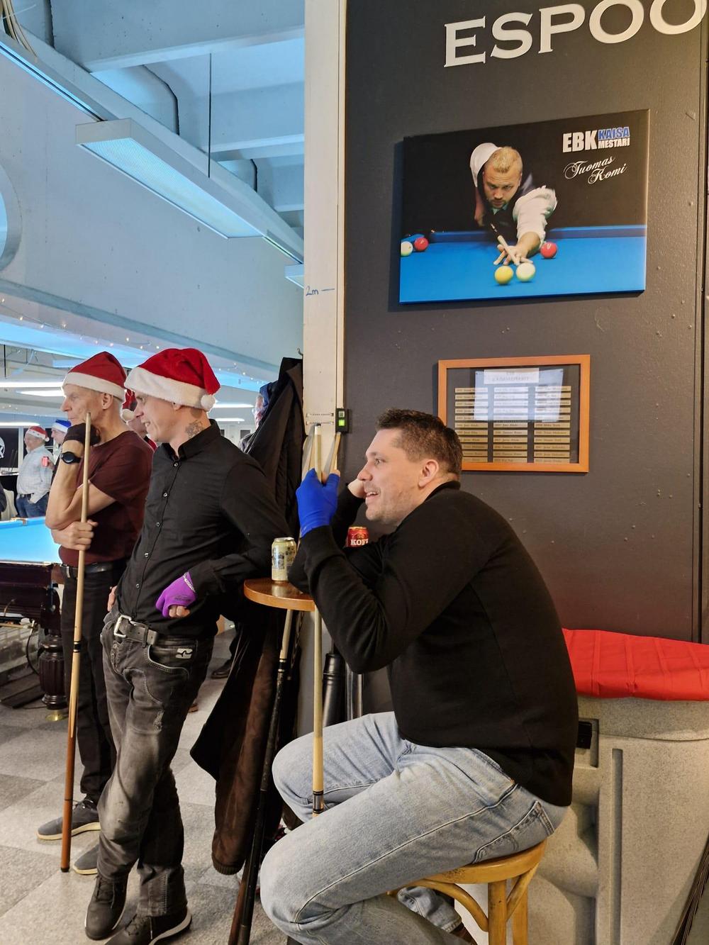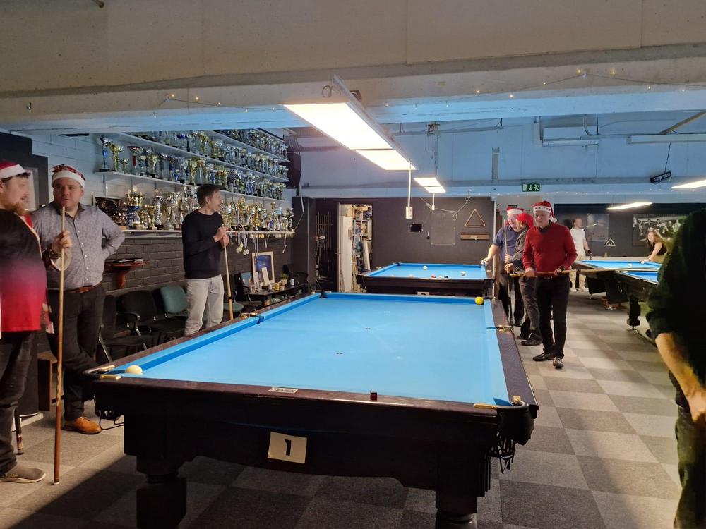 Pikkujoulut alkoi tuttuun tapaan kinkkukilpailuilla jossa pelattiin taas totutusti sekä 8-palloa (9-pakalla) kaisapöydällä että kärriä pyramidi- & kaisapöydillä yhtenä kilpailuna. Kinkkuja oli jaossa 3 kpl, 8-pallokilpailun voittajalle, kärrikilpailun voittajalle ja kärrikilpailun parhaalle tappajalle. 35 pelaajan ollessa mukana tempo oli nopea ja mestareita jouduttiin selvittämään vielä ruokailun jälkeenkin.