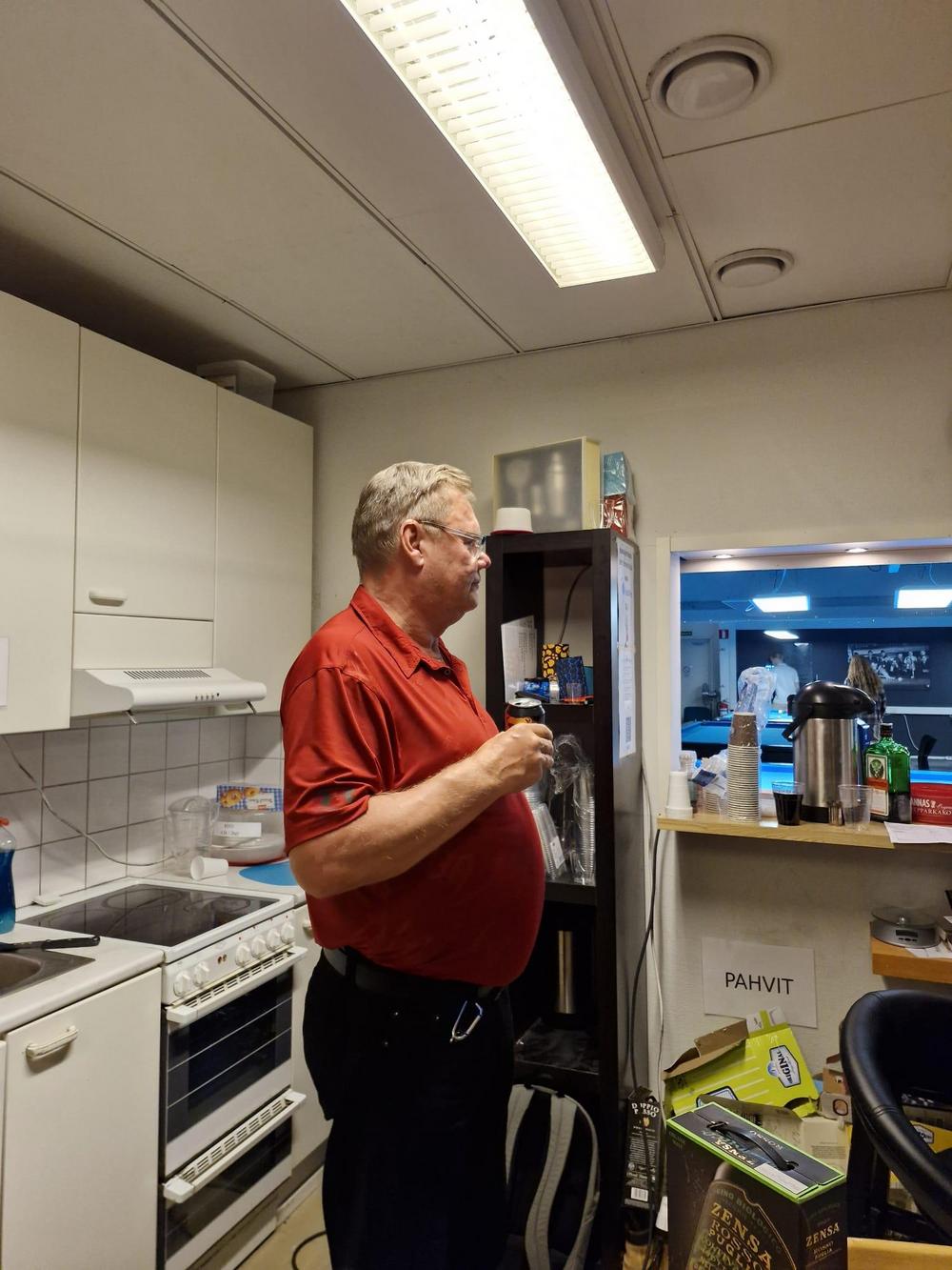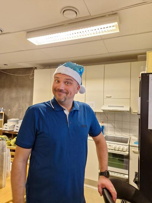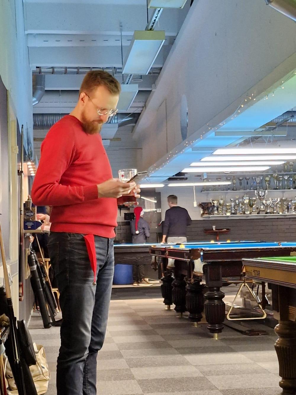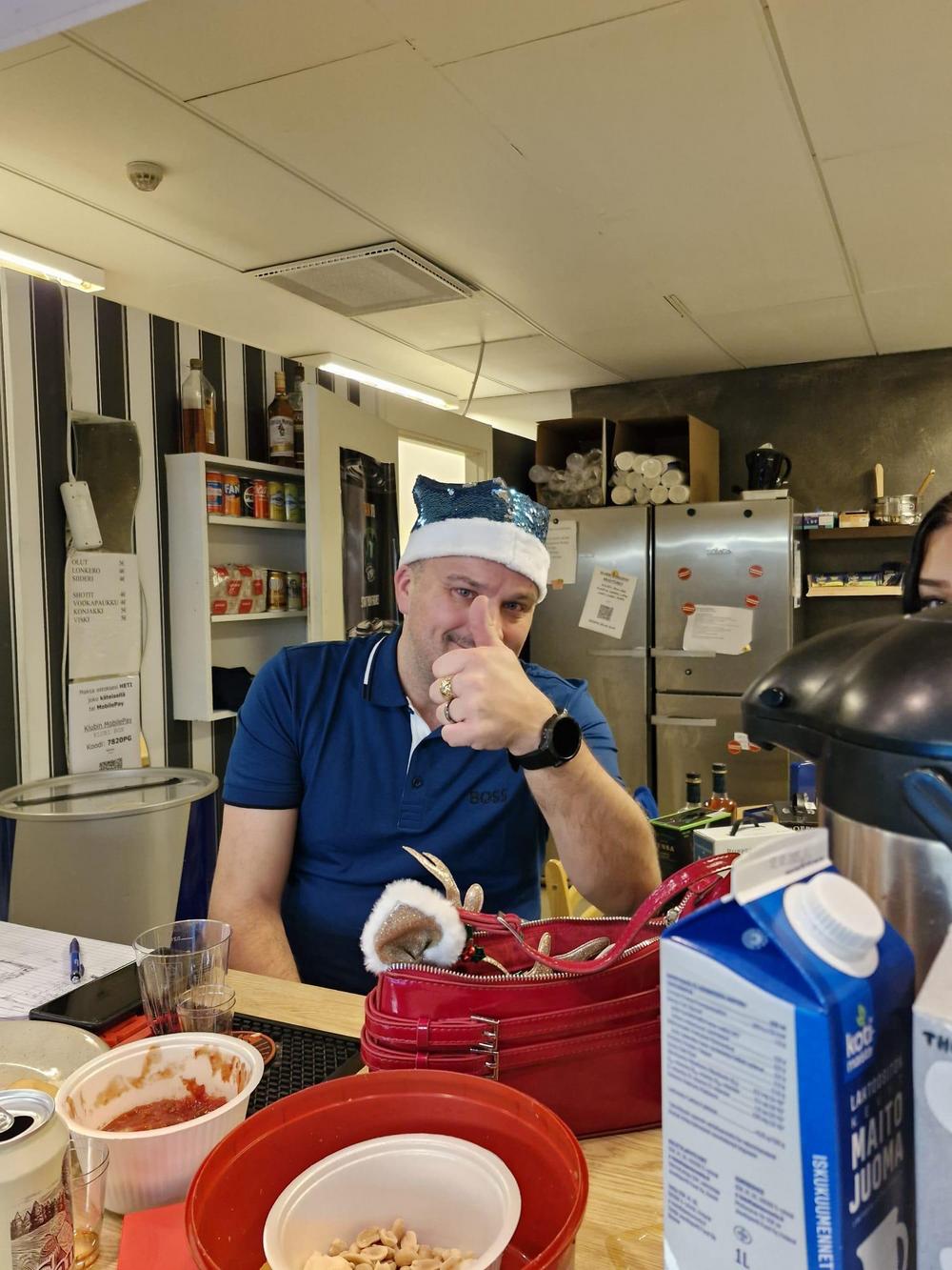 Tuomas Komi toimi taas aktiivisesti yhtenä pikkujoulujen pääjärjestäjänä. Klubi-isäntä itse olikin koko päivän hyvin kiireinen kestitessään muita olemalla "kaiken vapaa-ajan" keittiö(ide)n puolella pitääkseen janoiset (ja myöhemmin nälkäiset) pikkujouluilijat tyytyväisenä. Kiitos Tube! Kaikki narut menisi melko lailla pahasti sekaisin joka kerta pikkujouluissa ilman klubi-isäntäämme :-)