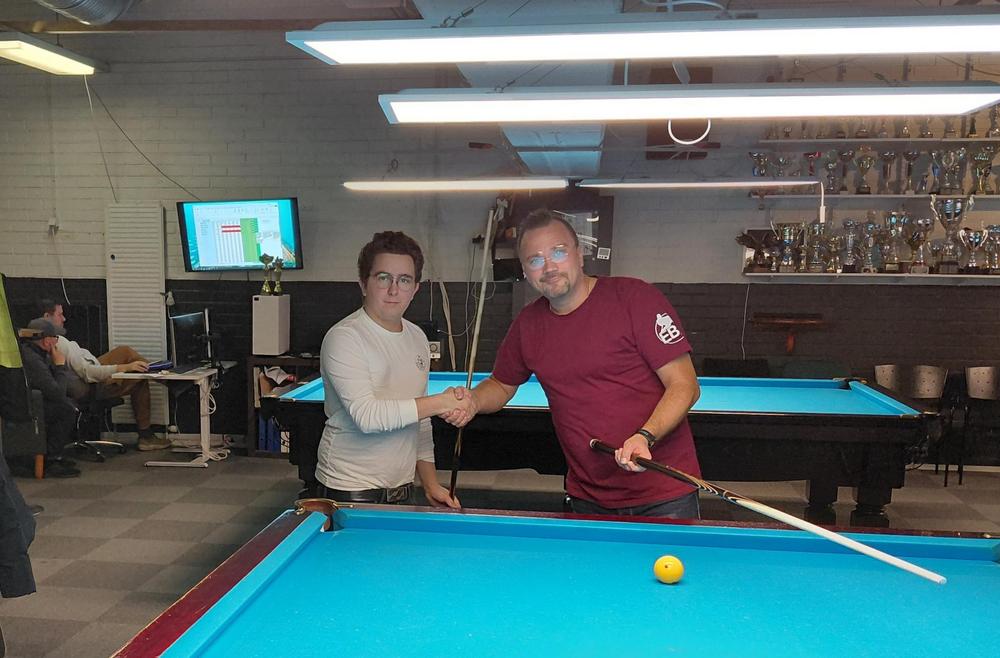 Kolmanteen erään Jarno iski turnauksen toisen kasin sarjan ja siirtyi päättäväisesti erän päähän mestaruudesta. Neljännessä erässä pallojen ollessa tilanteessa 4-4, Jarnolle avautui paikka ja tekikin loput pallot - viimeisellä vielä henkselit mestaruuden kunniaksi eli kaksi palloa kerralla.