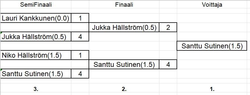 Cuppipeleihin suoraan kahdella voitolla Late ja Niko, sekä yhden tappion kärsineinä Jukka ja Santtu.