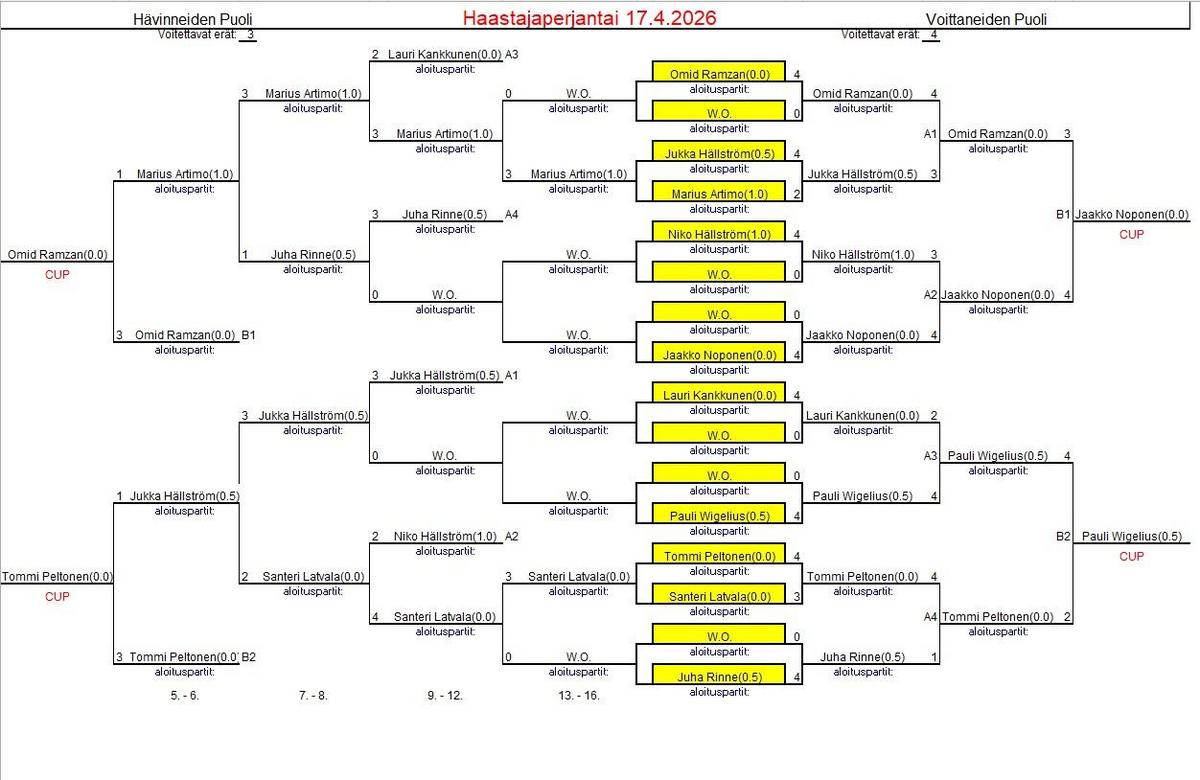 Hävinneiden puolelta kipusivat semeihin Tommi ja Omid.