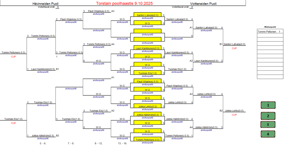 Jukan ja Tommin semifinaali eteni erä kummallekin vuorotahtiin. Miinuspuolelta lähtenyt Tommi jäi lopulta 4-2 tappiolle.